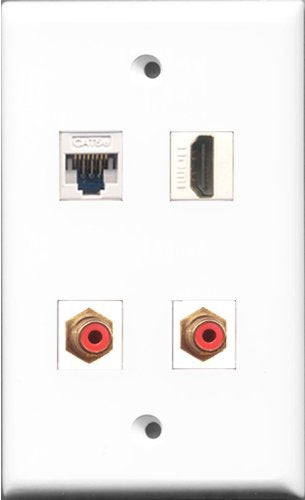 RiteAV - 1 Port HDMI 2 Port RCA Red and 1 Port Cat5e Ethernet White Wall Plate