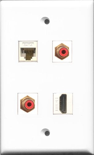 RiteAV 1 Port HDMI 2 Port RCA Red and 1 Port Cat6 Ethernet White Wall Plate