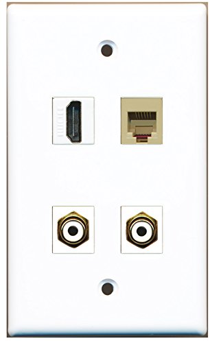RiteAV - 1 Port HDMI 2 Port RCA White 1 Port Phone RJ11 RJ12 Beige Wall Plate