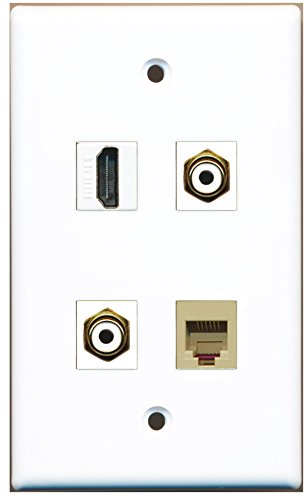 RiteAV - 1 Port HDMI 2 Port RCA White 1 Port Phone RJ11 RJ12 Beige Wall Plate