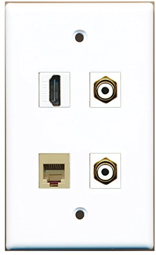 RiteAV - 1 Port HDMI 2 Port RCA White 1 Port Phone RJ11 RJ12 Beige Wall Plate