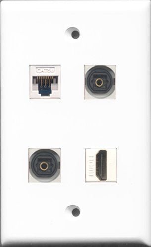 RiteAV 1 Port HDMI 2 Port Toslink and 1 Port Cat5e Ethernet White Wall Plate
