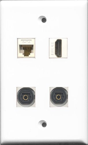 RiteAV 1 Port HDMI 2 Port Toslink and 1 Port Cat6 Ethernet White Wall Plate