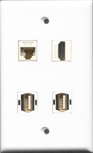RiteAV 1 Port HDMI 2 Port USB A-A and 1 Port Cat6 Ethernet White Wall Plate