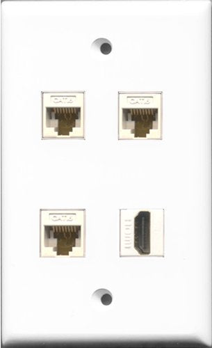 RiteAV 1 Port HDMI 3 Port Cat6 Ethernet White Wall Plate