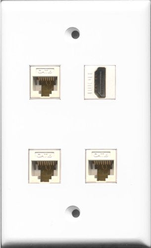 RiteAV 1 Port HDMI 3 Port Cat6 Ethernet White Wall Plate
