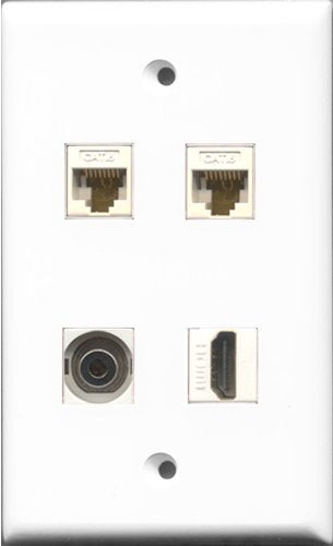 RiteAV 1 Port HDMI and 1 Port 3.5mm 2 Port Cat6 Ethernet White Wall Plate