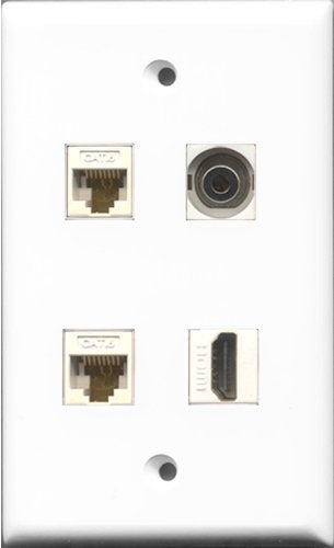 RiteAV 1 Port HDMI and 1 Port 3.5mm 2 Port Cat6 Ethernet White Wall Plate