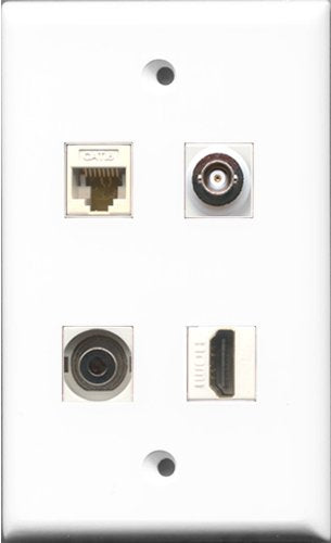 RiteAV 1 Port HDMI and 1 Port 3.5mm and 1 Port BNC and 1 Port Cat6 Ethernet White Wall Plate
