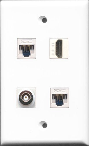 RiteAV - 1 Port HDMI and 1 Port BNC 2 Port Cat5e Ethernet White Wall Plate