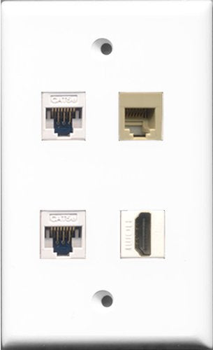 RiteAV 1 Port HDMI and 1 Port Phone RJ11 RJ12 Beige 2 Port Cat5e Ethernet White Wall Plate