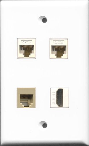 RiteAV 1 Port HDMI and 1 Port Phone RJ11 RJ12 Beige 2 Port Cat6 Ethernet White Wall Plate