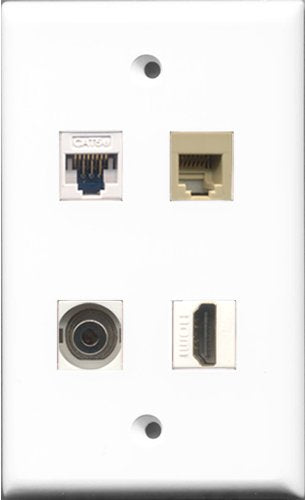 RiteAV 1 Port HDMI and 1 Port Phone RJ11 RJ12 Beige and 1 Port 3.5mm and 1 Port Cat5e Ethernet White Wall Plate
