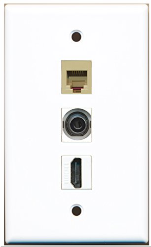 RiteAV - 1 Port HDMI and 1 Port Phone RJ11 RJ12 Beige and 1 Port 3.5mm Wall Plate