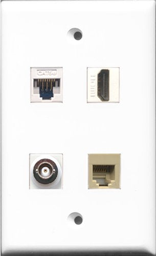 RiteAV - 1 Port HDMI and 1 Port Phone RJ11 RJ12 Beige and 1 Port BNC and 1 Port Cat5e Ethernet White Wall Plate