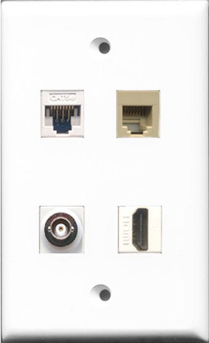 RiteAV 1 Port HDMI and 1 Port Phone RJ11 RJ12 Beige and 1 Port BNC and 1 Port Cat5e Ethernet White Wall Plate