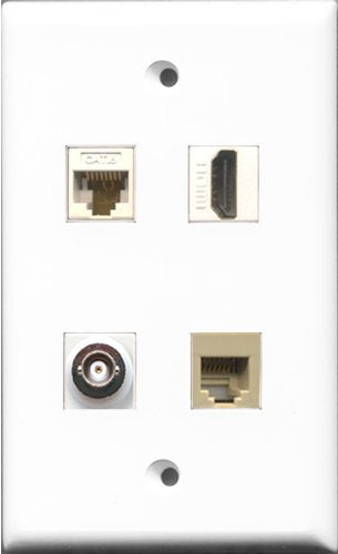 RiteAV 1 Port HDMI and 1 Port Phone RJ11 RJ12 Beige and 1 Port BNC and 1 Port Cat6 Ethernet White Wall Plate