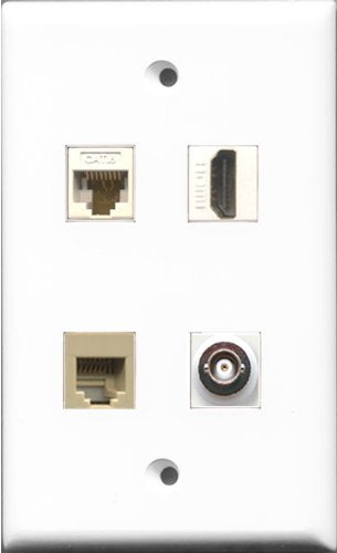 RiteAV 1 Port HDMI and 1 Port Phone RJ11 RJ12 Beige and 1 Port BNC and 1 Port Cat6 Ethernet White Wall Plate