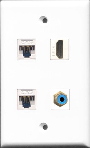 RiteAV - 1 Port HDMI and 1 Port RCA Blue 2 Port Cat5e Ethernet White Wall Plate