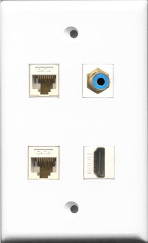 RiteAV 1 Port HDMI and 1 Port RCA Blue 2 Port Cat6 Ethernet White Wall Plate