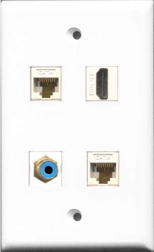 RiteAV 1 Port HDMI and 1 Port RCA Blue 2 Port Cat6 Ethernet White Wall Plate