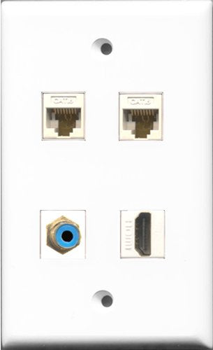RiteAV 1 Port HDMI and 1 Port RCA Blue 2 Port Cat6 Ethernet White Wall Plate