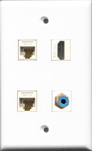 RiteAV 1 Port HDMI and 1 Port RCA Blue 2 Port Cat6 Ethernet White Wall Plate