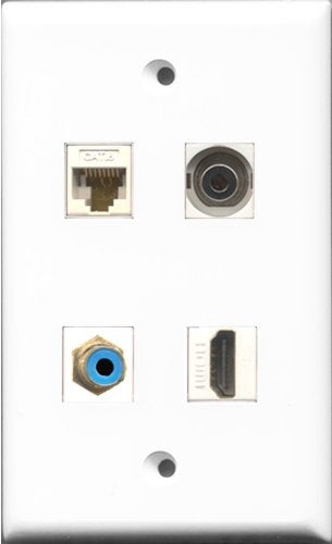 RiteAV 1 Port HDMI and 1 Port RCA Blue and 1 Port 3.5mm and 1 Port Cat6 Ethernet White Wall Plate