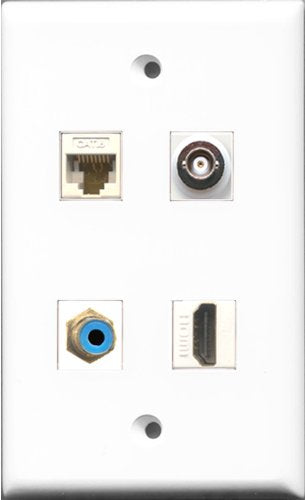 RiteAV 1 Port HDMI and 1 Port RCA Blue and 1 Port BNC and 1 Port Cat6 Ethernet White Wall Plate
