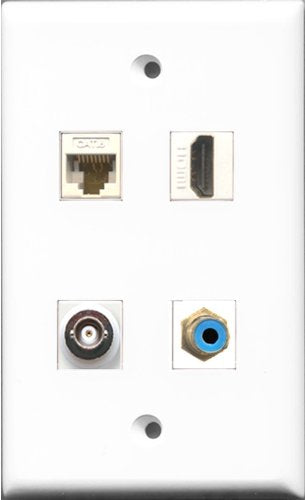 RiteAV 1 Port HDMI and 1 Port RCA Blue and 1 Port BNC and 1 Port Cat6 Ethernet White Wall Plate