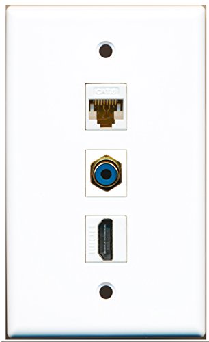 RiteAV - 1 Port HDMI and 1 Port RCA Blue and 1 Port Cat6 Ethernet White Wall Plate