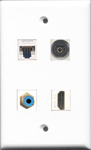 RiteAV 1 Port HDMI and 1 Port RCA Blue and 1 Port Toslink and 1 Port Cat5e Ethernet White Wall Plate