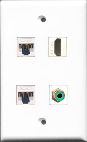 RiteAV - 1 Port HDMI and 1 Port RCA Green 2 Port Cat5e Ethernet White Wall Plate