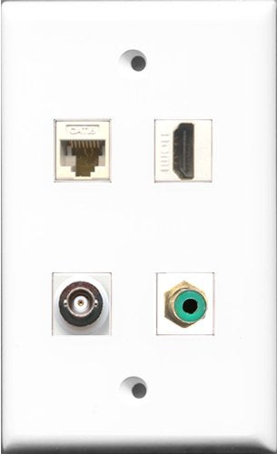 RiteAV 1 Port HDMI and 1 Port RCA Green and 1 Port BNC and 1 Port Cat6 Ethernet White Wall Plate