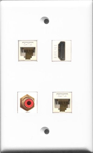 RiteAV 1 Port HDMI and 1 Port RCA Red 2 Port Cat6 Ethernet White Wall Plate