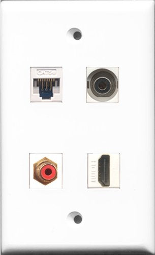 RiteAV - 1 Port HDMI and 1 Port RCA Red and 1 Port 3.5mm and 1 Port Cat5e Ethernet White Wall Plate