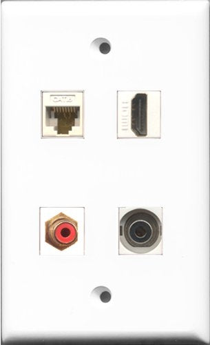 RiteAV 1 Port HDMI and 1 Port RCA Red and 1 Port 3.5mm and 1 Port Cat6 Ethernet White Wall Plate
