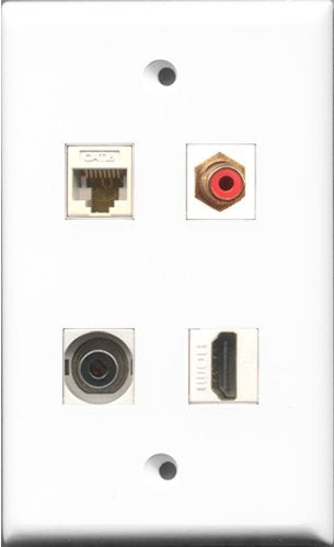 RiteAV 1 Port HDMI and 1 Port RCA Red and 1 Port 3.5mm and 1 Port Cat6 Ethernet White Wall Plate