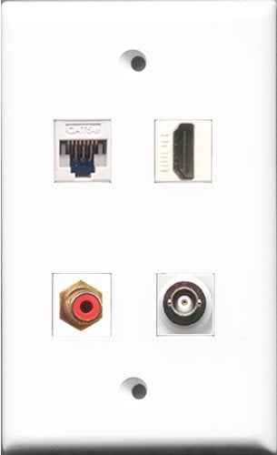 RiteAV - 1 Port HDMI and 1 Port RCA Red and 1 Port BNC and 1 Port Cat5e Ethernet White Wall Plate