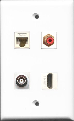 RiteAV 1 Port HDMI and 1 Port RCA Red and 1 Port BNC and 1 Port Cat6 Ethernet White Wall Plate