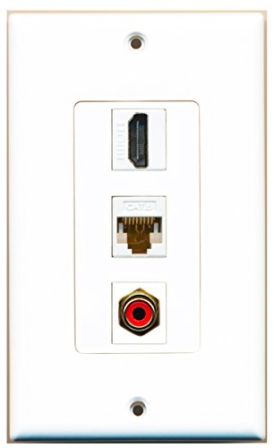 RiteAV - 1 Port HDMI and 1 Port RCA Red and 1 Port Cat6 Ethernet White Decorative Wall Plate Decorative