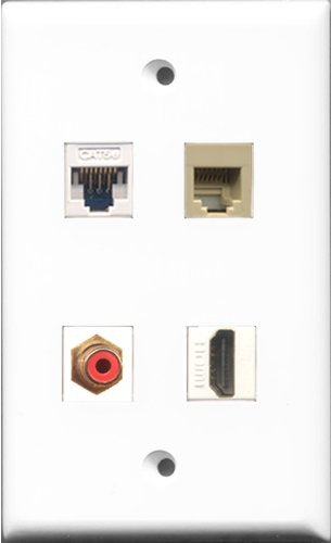 RiteAV 1 Port HDMI and 1 Port RCA Red and 1 Port Phone RJ11 RJ12 Beige and 1 Port Cat5e Ethernet White Wall Plate