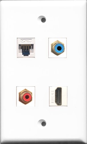 RiteAV 1 Port HDMI and 1 Port RCA Red and 1 Port RCA Blue and 1 Port Cat5e Ethernet White Wall Plate