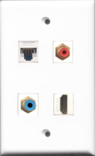RiteAV 1 Port HDMI and 1 Port RCA Red and 1 Port RCA Blue and 1 Port Cat5e Ethernet White Wall Plate