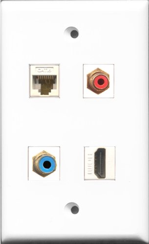 RiteAV 1 Port HDMI and 1 Port RCA Red and 1 Port RCA Blue and 1 Port Cat6 Ethernet White Wall Plate
