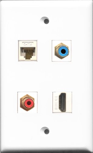 RiteAV 1 Port HDMI and 1 Port RCA Red and 1 Port RCA Blue and 1 Port Cat6 Ethernet White Wall Plate