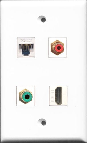 RiteAV 1 Port HDMI and 1 Port RCA Red and 1 Port RCA Green and 1 Port Cat5e Ethernet White Wall Plate