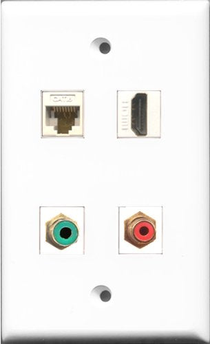 RiteAV 1 Port HDMI and 1 Port RCA Red and 1 Port RCA Green and 1 Port Cat6 Ethernet White Wall Plate