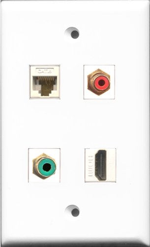 RiteAV 1 Port HDMI and 1 Port RCA Red and 1 Port RCA Green and 1 Port Cat6 Ethernet White Wall Plate
