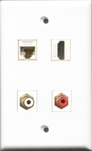 RiteAV 1 Port HDMI and 1 Port RCA Red and 1 Port RCA White and 1 Port Cat6 Ethernet White Wall Plate